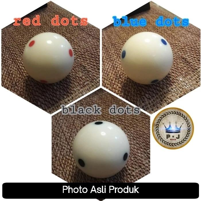 PJ - Billiard Cue Ball | Bola Putih 2.1/4 inch (57.2mm) 6 Red | Blue | Black Dots | Meja 9Ft | 8 Ft | 7Ft non Coin Model Aramith Pro TV Cup | Bola Besar.